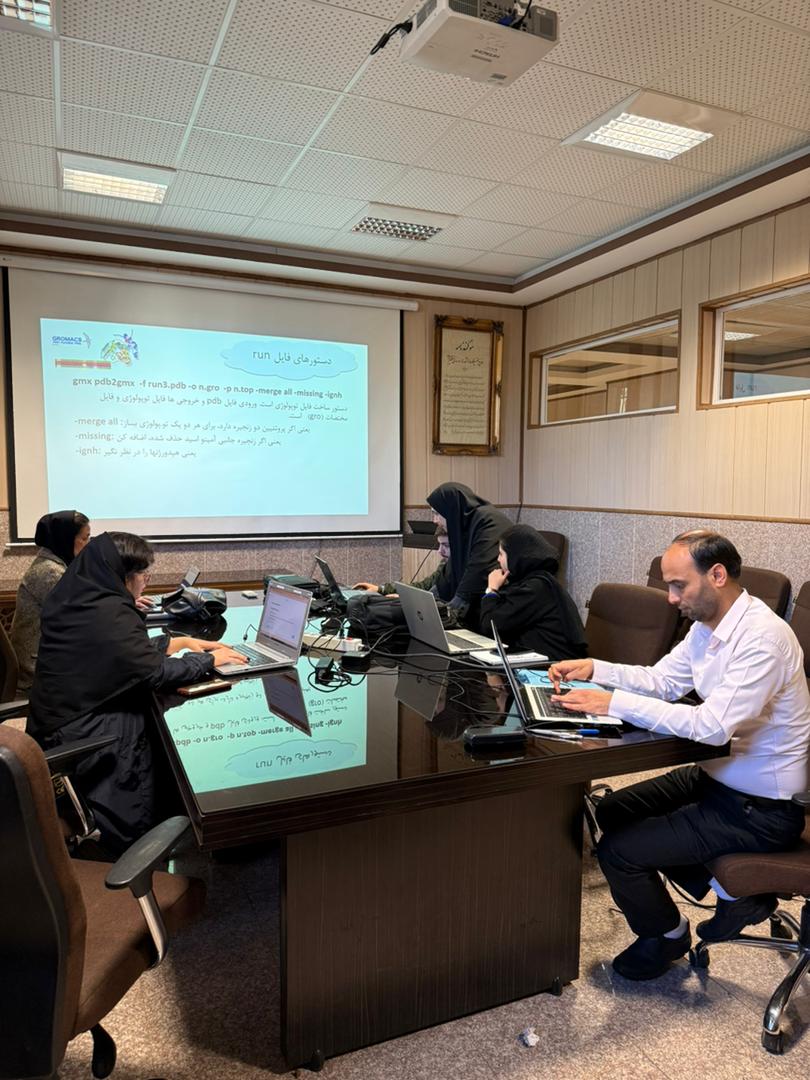 برگزاری کارگاه آشنایی با شبیه سازی دینامیک مولکولی با هدف ارزیابی داروهای جدید پروتئینی با استفاده از نرم افزار گرومکس
