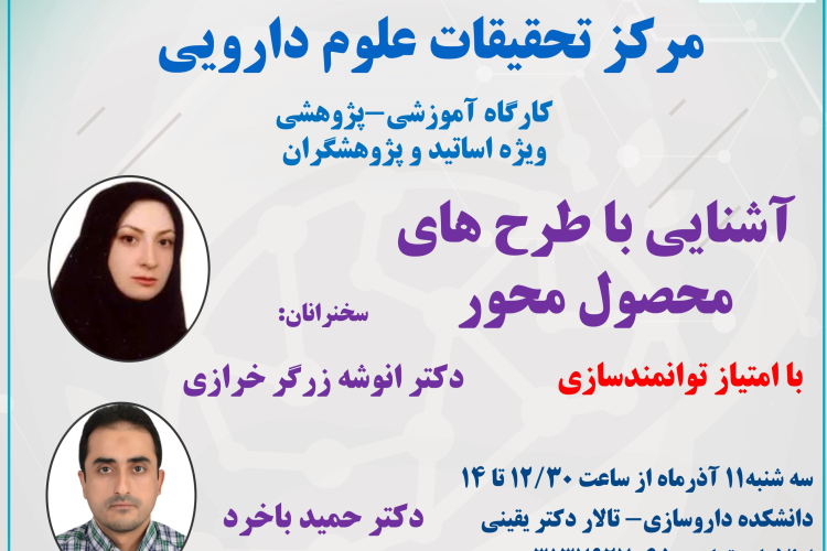 کارگاه «آشنایی با طرحهای محصولمحور» روز سهشنبه ۱۱ آذرماه ۱۴۰۴ به همت مرکز تحقیقات علوم دارویی دانشکده داروسازی و با حضور اساتید، پژوهشگران و اعضای هیئت علمی در تالار دکتر یقینی دانشکده داروسازی با سخنرانی سرکار خانم دکتر انوشه زرگر خرازی و جناب آقای دکتر حمید باخرد برگزار شد. در این برنامه، سخنرانان با ارائه مباحث تخصصی، اصول طراحی طرحهای محصولمحور، الزامات تبدیل ایده به محصول و مسیرهای توانمندسازی پژوهشگران را تشریح کردند. شرکتکنندگان ضمن دریافت آموزشهای کاربردی، نمونههای موفق و چالشهای اجرایی طرحهای صنعتی در حوزه داروسازی را بررسی کردند.