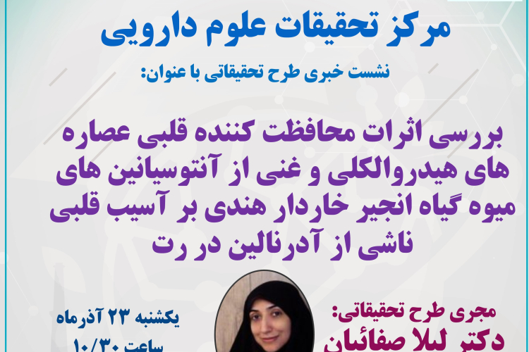 مجری طرح: خانم دکتر لیلا صفائیان-زمان: 23 آذر ساعت 10/30- دانشکده داروسازی- تالار دکتر یقینی